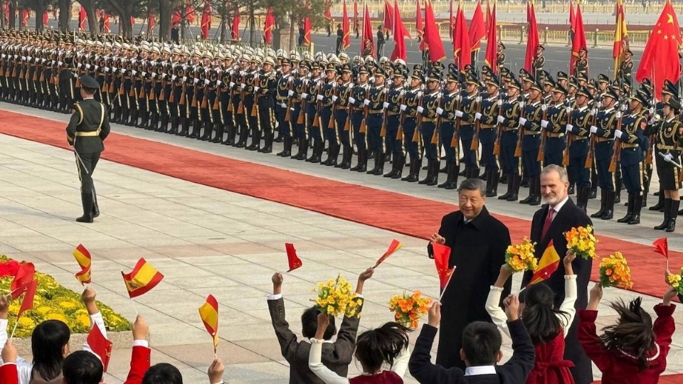 En su primera visita de Estado a China desde su coronación, Felipe VI y Letizia fueron recibidos con honores en el Gran Salón del Pueblo. Xi destacó la cooperación global y anunció que China "continuará con su política de exención de visados para España".