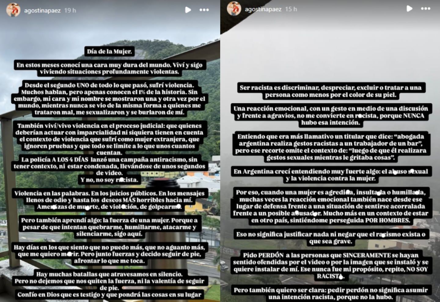 La abogada argentina Agostina Páez, acusada de racismo en Brasil, publicó un fuerte descargo en redes sociales mientras espera una resolución de la Justicia de ese país. En el mensaje denunció haber sufrido hostigamiento, amenazas y campañas de desprestigio desde que estalló la polémica.