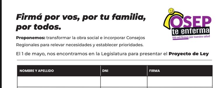 El eje central del reclamo continúa siendo la recolección de 100.000 firmas para activar el mecanismo de Iniciativa Legislativa Popular, una herramienta constitucional que permitiría ingresar un proyecto de ley de reforma integral de la Obra Social de Empleados Públicos (OSEP) con tratamiento parlamentario obligatorio.