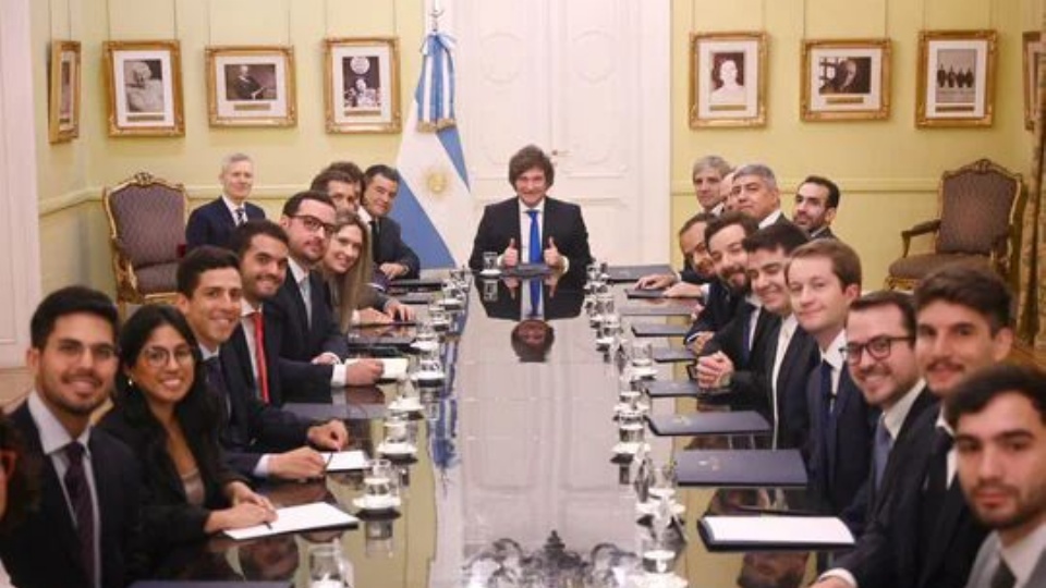 El encuentro se realizó en el Salón de los Científicos, donde el mandatario estuvo escoltado por el equipo económico que encabeza el ministro de Economía, Luis Caputo, y otras autoridades del área energética. Del lado de la empresa participó la cúpula de Vista Energy, con Galuccio como figura central.